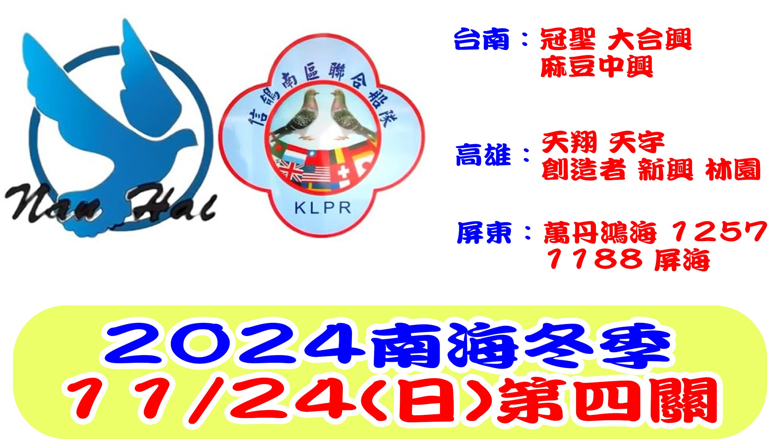 11/24(日)南海聯合船隊冬季第四關 2024年冬季比賽[7:00放鴿]