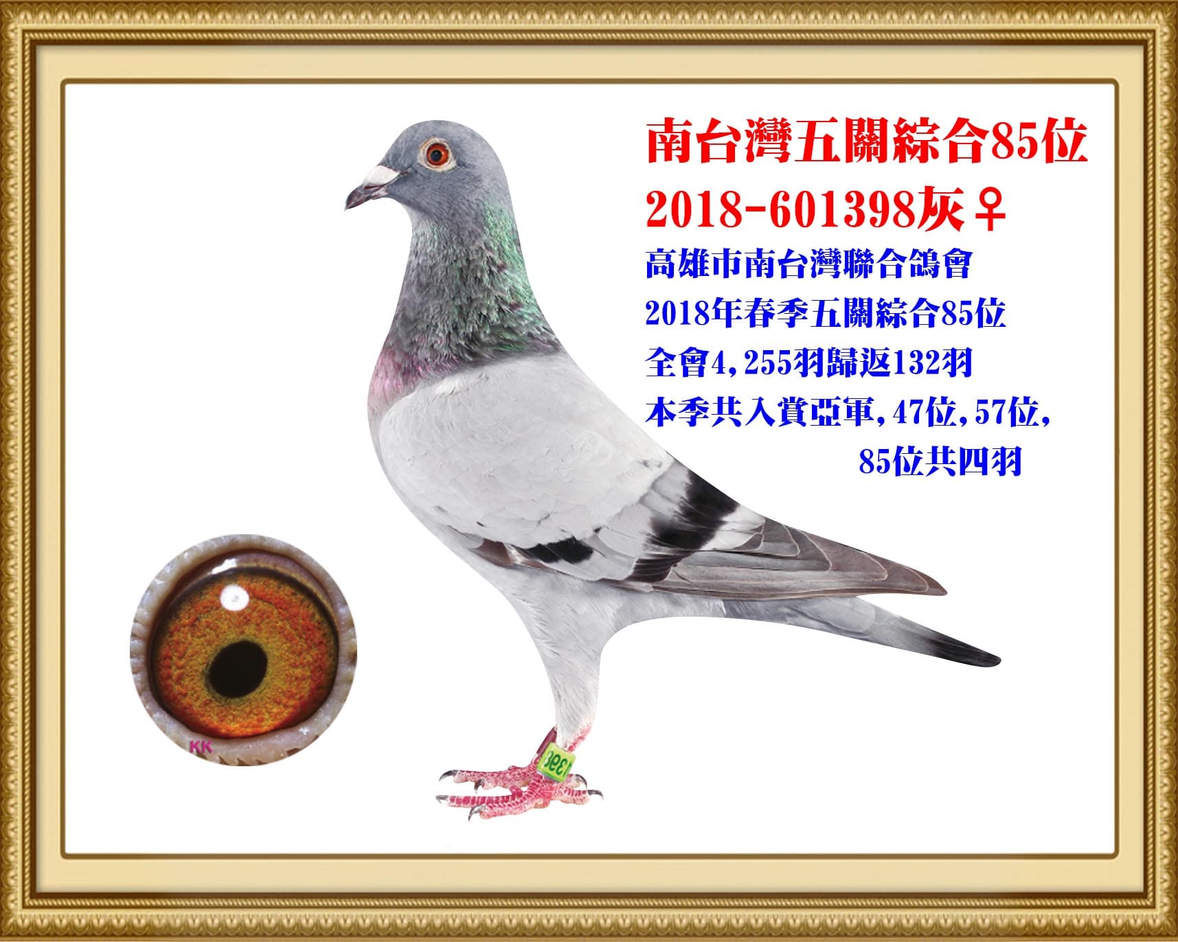 本季共入賞亞軍,47位,57位,85位共四羽
