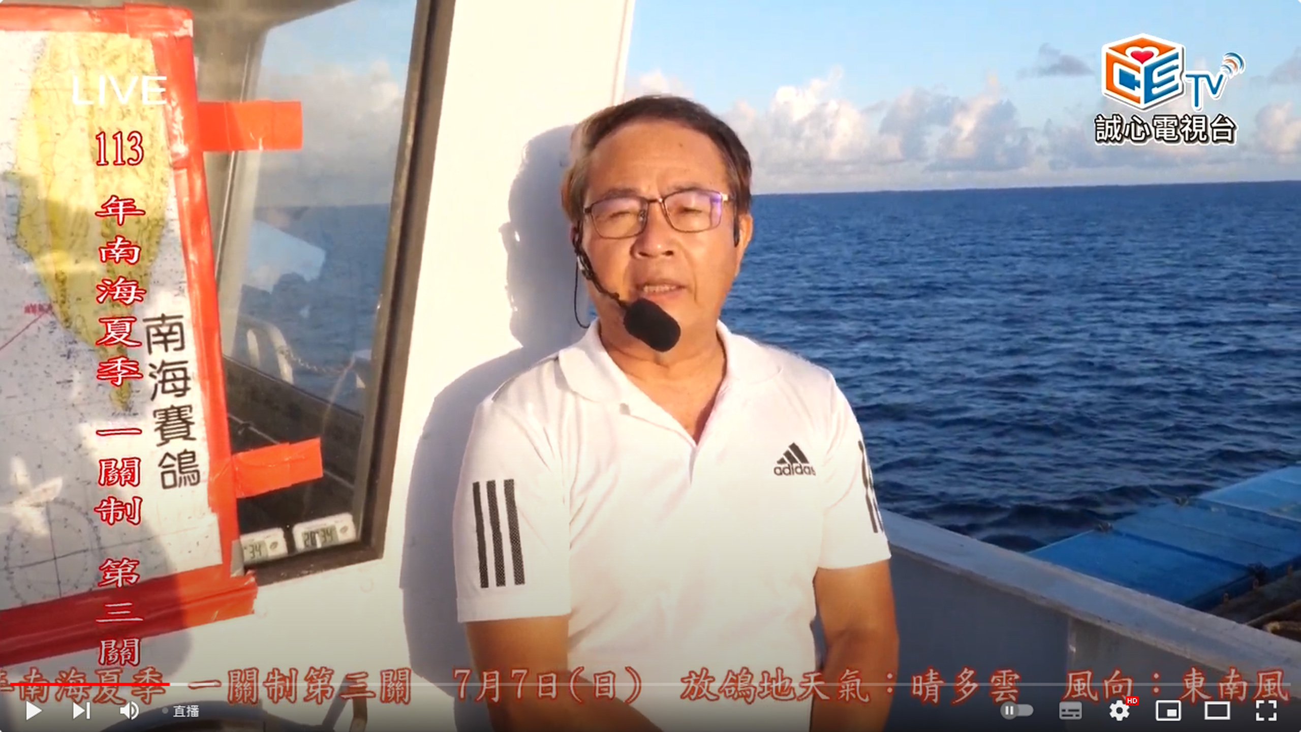 1113夏第三關,距離高雄港270公里,天氣:晴多雲/東南風/2級/小浪/能見度:13公里,6:30準時放鴿