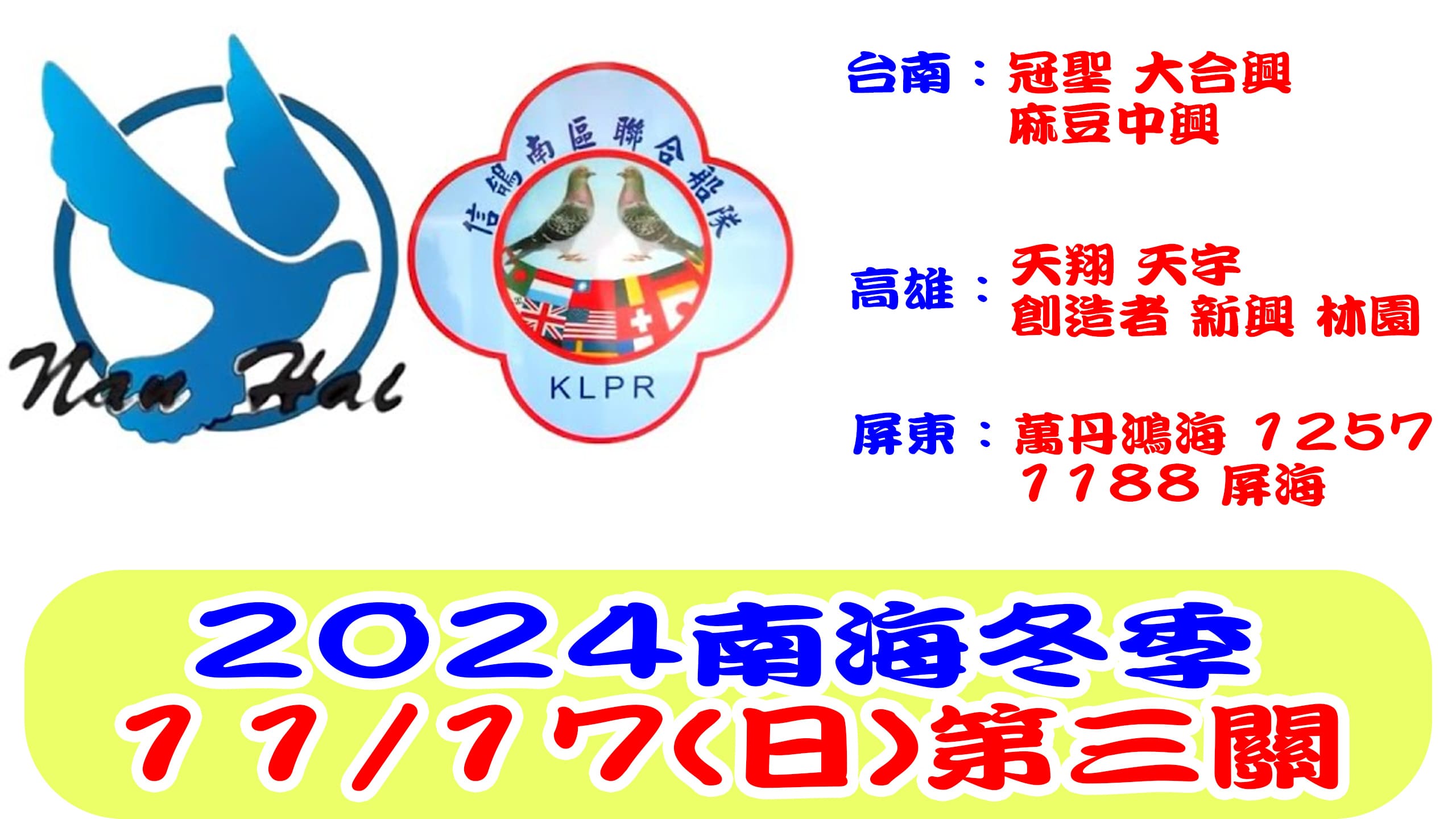 11/17(日)南海聯合船隊冬季第三關 2024年冬季比賽[7:00放鴿]