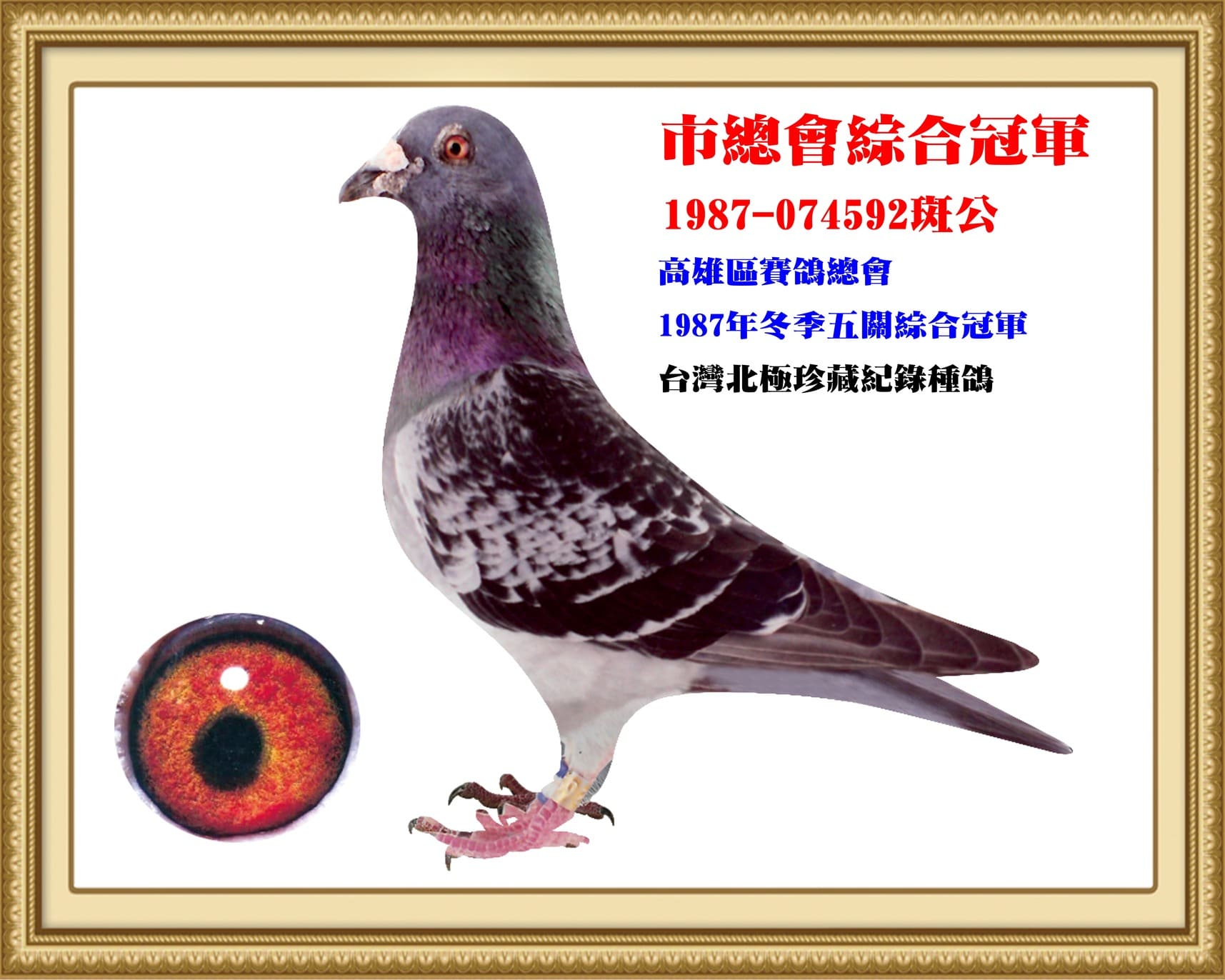 高雄區賽鴿總會1987年冬季五關綜合冠軍